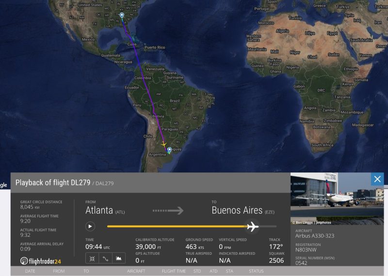 Mi pregunta es: si uno de los vuelos de Delta desde Atlanta hacia Buenos Aires se demora en llegar a Ezeiza y debe volver por la mañana a Estados Unidos, ¿podrían reemplazarlo con el avión que iba a estar todo el día en Ezeiza?