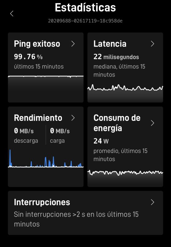 Datos de consumo según la aplicación de Starlink, 24w en promedio cuando la estuve usando.