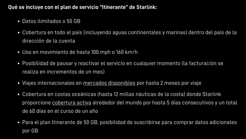 Pero esto dice el sitio de Starlink sobre el ITINERANTE, donde confirman lo de lo viajes internacionales. Entiendo por ejemplo que si alguien se va a CUBA… puede tener internet.