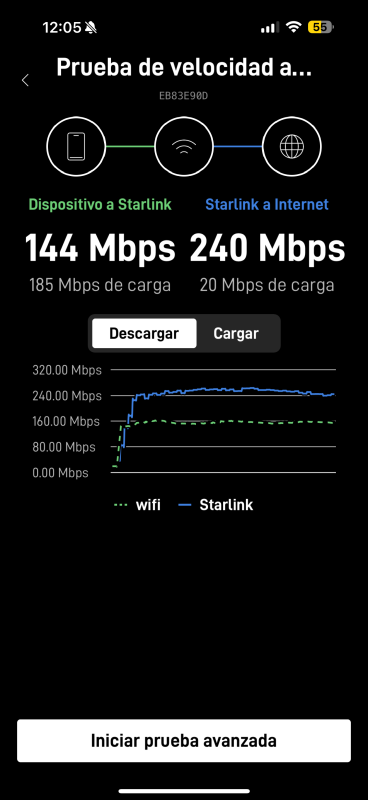 La prueba de velocidad avanzada con la misma app, lo de la derecha es lo que llega al kit y lo de la izquierda lo que llegaba a mi celular.