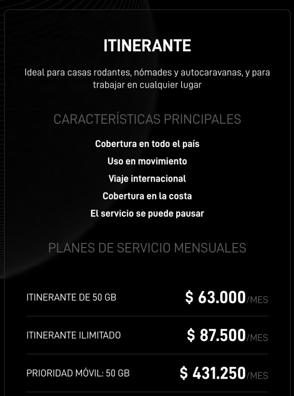Hola Sir, acabo de comprarme la Starlink Mini, la verdad me terminé convenciendo gracias a tu publicación con el objetivo de dar de baja Telecentro y quedarme con el servicio de Internet satelital agregando Directv Go para ver los canales de cable. De paso me la llevo cuando me voy a Brasil en auto a inicios de febrero. Lo que no encuentro es donde dice que se puede utilizar en el exterior por 60 días con el plan itinerante?. Porque el plan que permite el uso en otros países está arriba de $ 400 mil/mes y es un valor que ya me parece mucho para el uso que yo le daría, que es solo por una cuestión de comodidad.