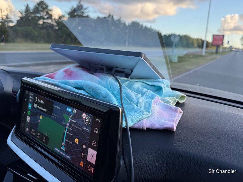 En las pruebas la usé en movimiento sobre el «torpedo» del auto porque es una de las opciones.
