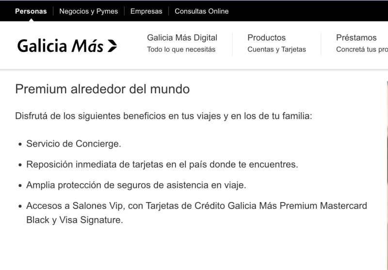 Estimo, reitero, ESTIMO que es algo de la transición y que quedó algo sin enchufar… porque en el nuevo sitio reformado del HSBC con Galicia Más sigue figurando lo de beneficios en viajes y salones vip