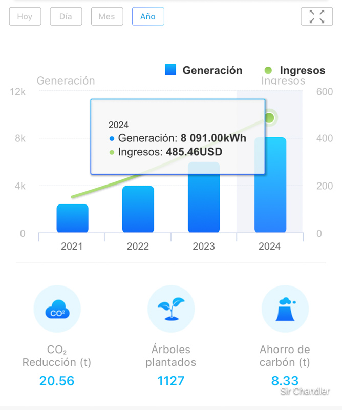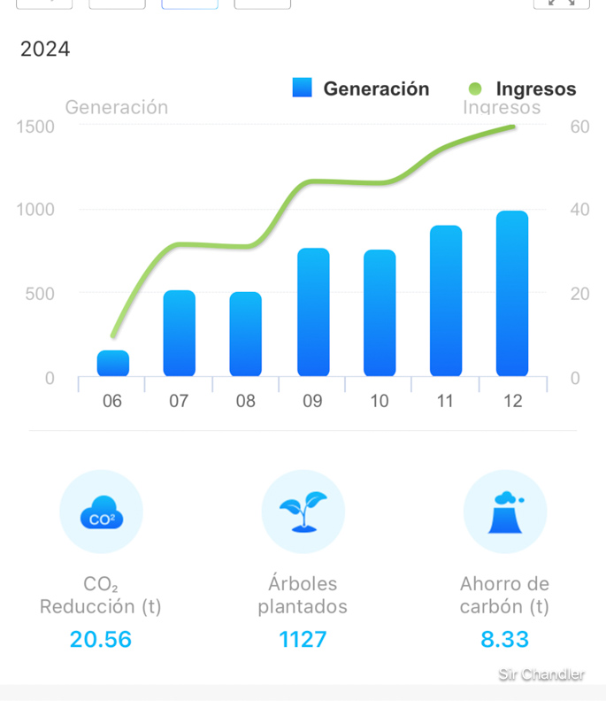 Este 2024 fue récord la producción de energía en casa alcanzando esta mañana los 8.091kw generados, pero como falta todo el día de hoy (que terminará en 36kw estimo y el de mañana… que quizás sean con suerte 10 porque estará nublado, oficialmente terminaré en más de 8.100