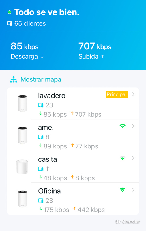 Me fijé y esta mañana decía la red mesh que solo eran 65 «clientes» conectados. E insistiré en las redes de wifi mesh para una casa inteligente o esas que los routers malos que dan los proveedores, solucionen la falta de acceso a toda la casa.