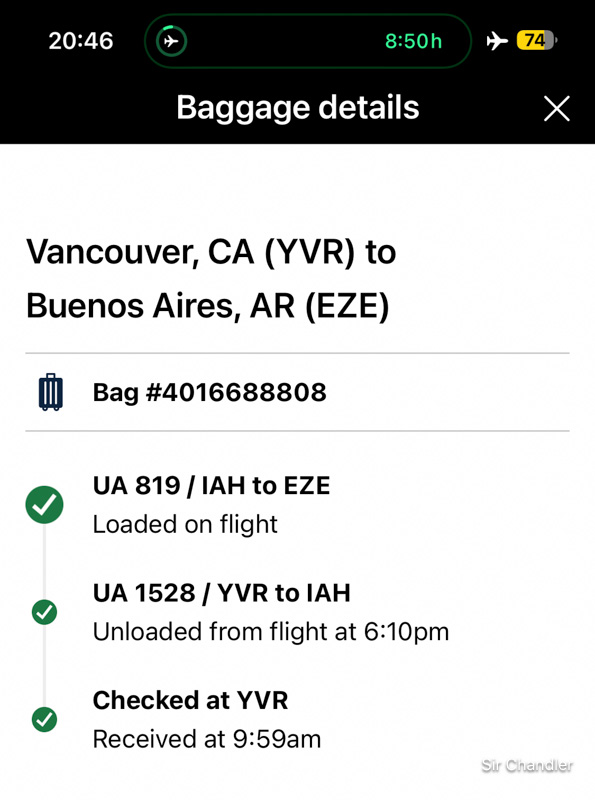 La app de United hace tiempo tiene el seguimiento del equipaje lo que permite saber si la etiqueta que tiene la valija fue escaneada en tal o cual lado