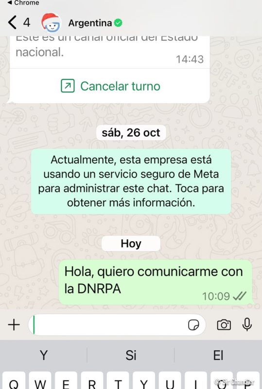 Hice click ahí y me disparó al whatsapp del país (???) el mismo que me había confirmado unos pasaportes hace algunas semanas. El mensaje ya está pre configurado, el de Quiero comunicarme con…