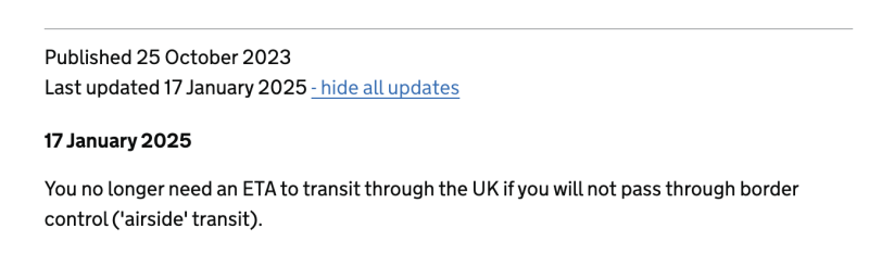 Algo importante que actualizó ayer el Reino Unido con el ETA es que no lo pedirán cuando alguien esté en tránsito y no entre. Acá se puede ver esa actualización