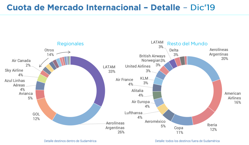 VAYAMOS AL ARCÓN DE LOS RECUERDOS, con la torta de diciembre 2019 para ver que cambió. Aerolíneas perdió 6 puntos y Latam unos 3… pero existía Latam Argentina