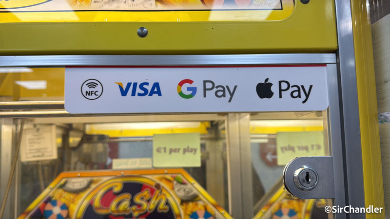 En esa maquina de peluches con pago NFC tiene integrado el dispositivo de Nayax una startup israeli (ese que we redondo con colores negro y amarillo). Esta empresa se expandió globalmente habilitado todo tipo de máquinas para pago con dispositivos móviles.
