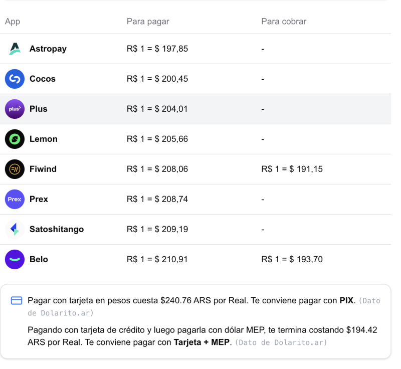 El sitio Compara Pix https://comparapix.ar/ que mostré hace unos días, da eso, lo marca abajo «$194,42» contra los otros valores pagando por PIX