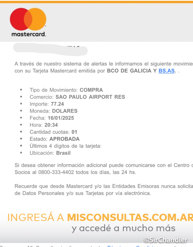 Llega el mail de consumo, que aun Galicia lo tiene, BBVA no porque cambió el procesador de la Master.