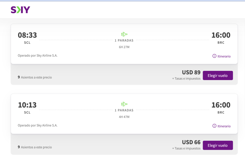 Y si lo buscamos desde Santiago, salta que es con la escala en Puerto Montt y espera
