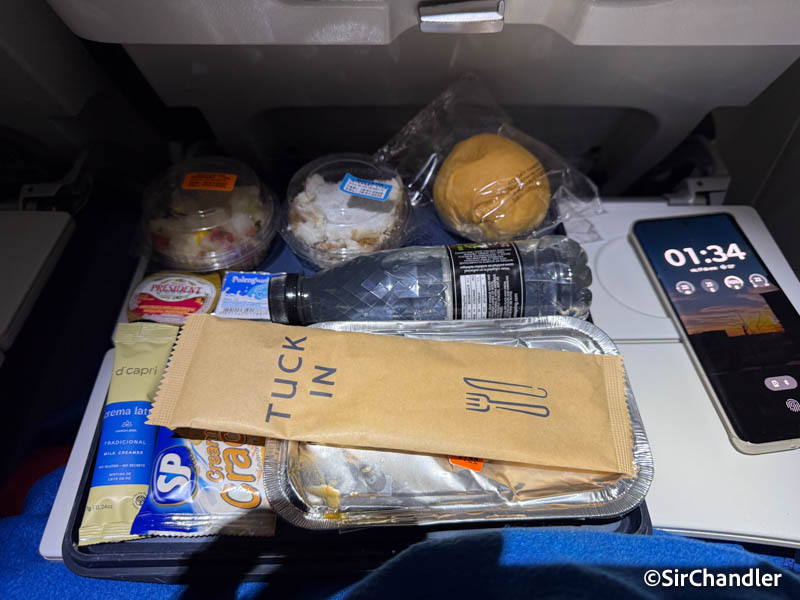 PERO NO ERA DESAYUNO!!! es muy loco, pero por el horario de este vuelo es complicado. Cuando despegan te dan cena… y cuando aterrizás llegás para pasado el almuerzo, entonces te dan el almuerzo!
