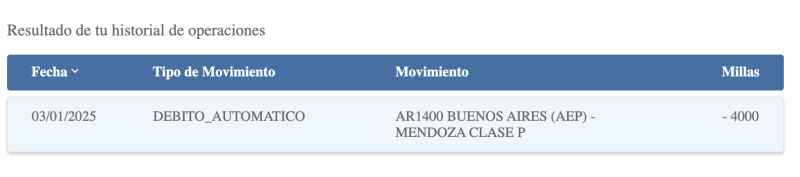 El primer vuelo de este 2025 fue rumbo a Mendoza en la madrugada del viernes 3 de enero. Lo planifiqué casi un mes antes y metí un canje de millas de ARPLUS ara la emisión. Lo curioso es que me metí en el detalle de la cuenta y el débito EN EL RESUMEN aparece con la fecha del vuelo. Aunque estimo que en el momento de hacerlo figurará algo provisorio.