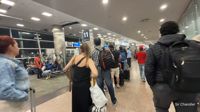 El vuelo estaba lleno y la fila se formó solo cuando hicieron el llamado (debe ser el sueño)
