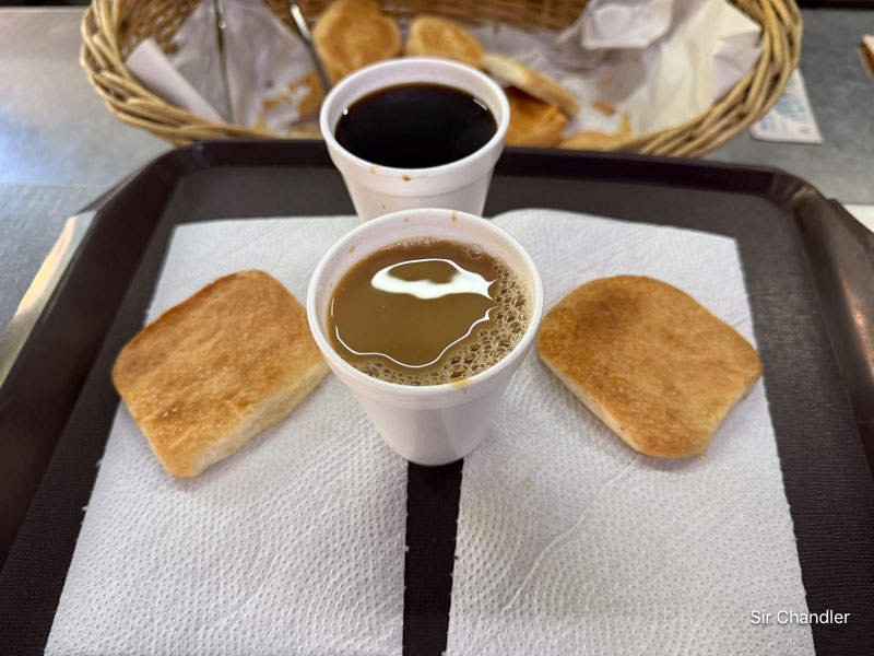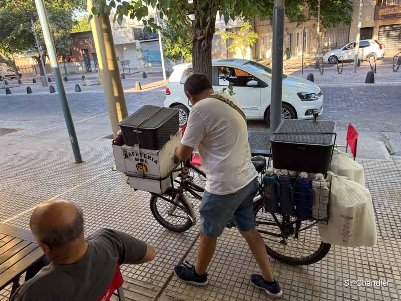 De ahí me fui a una cafetería curiosa… porque era muy temprano. Un amigo que me esperaba para acompañarme al primer video del día, me llevó a Cafetería Mitre, sobre la calle… MITRE, que es la cafetería donde los cafeteros ambulantes cargan sus termos.