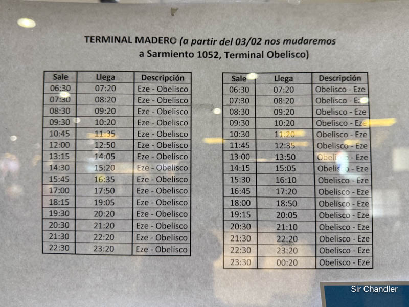 Por el lado de Tienda León, que puse la nota, acá en Ezeiza pude ver ayer los horarios del servicio con Aeroparque y con Obelisco