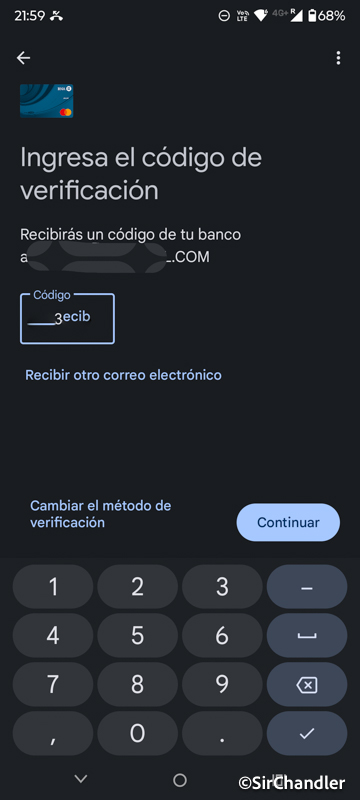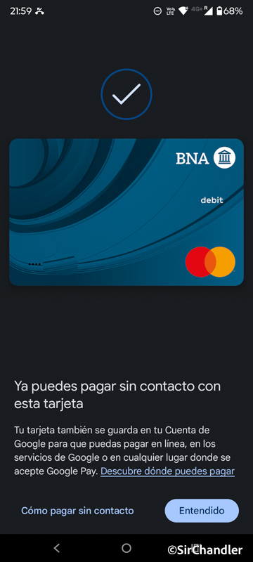 Esto lo vi no por una comunicación del banco, aunque ya aparece en su web, si no por los comentarios de los lectores. Así que procedí a ingresar mi tarjeta de débito del banco con sus números, vencimiento y código de seguridad en mi android con NFC (Moto 50 edge pro)