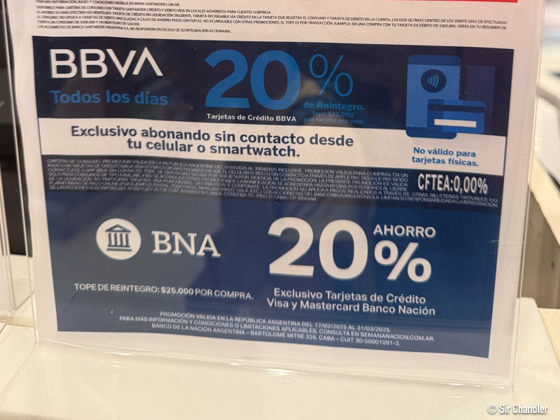 Pero lo que me pasó el sábado, es que quise comprar un perfume y pagar con el Galicia (que es el único que devuelve en el momento) y quise pagar con el celular, lo que llevó al empleado a decirme «no no, así solo el BBVA»… y le dije «probemos igual»… y obvio la promo la aplicó, por lo que el empleado MUY BUENA ONDA entendió que si obviamente es lo mismo el teléfono que la tarjeta… para una compra así. Sea Santander, Nación o Galicia… pero BBVA SOLO con el celular o reloj, de nuevo lo aclaro.