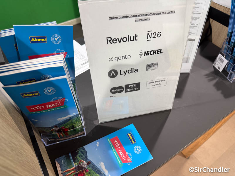 Tampoco tenían disponible para añadir cadenas para nieve, te responden que si no está disponible en la web no se puede añadir. A su vez, Álamo te dice que la ley francesa te exige cadenas o neumáticos para nieve. Me cansaron, acomodaré mi viaje para retirar el auto en Italia, no andan con tantas ñañas.