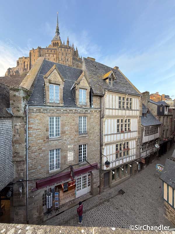La primera visita fue vía Passeur (el «micrito») a la tarde con la marea baja: un mundo de gente que dificultaba andar. Espectacular la abadía y la trepada. Vuelta caminando. Segunda visita a las 9 de la mañana siguiente con marea a pleno y el monte completamente aislado. Nada de gente, ideal para sacar fotos de las callejuelas sin que nadie se cruce en el intento.