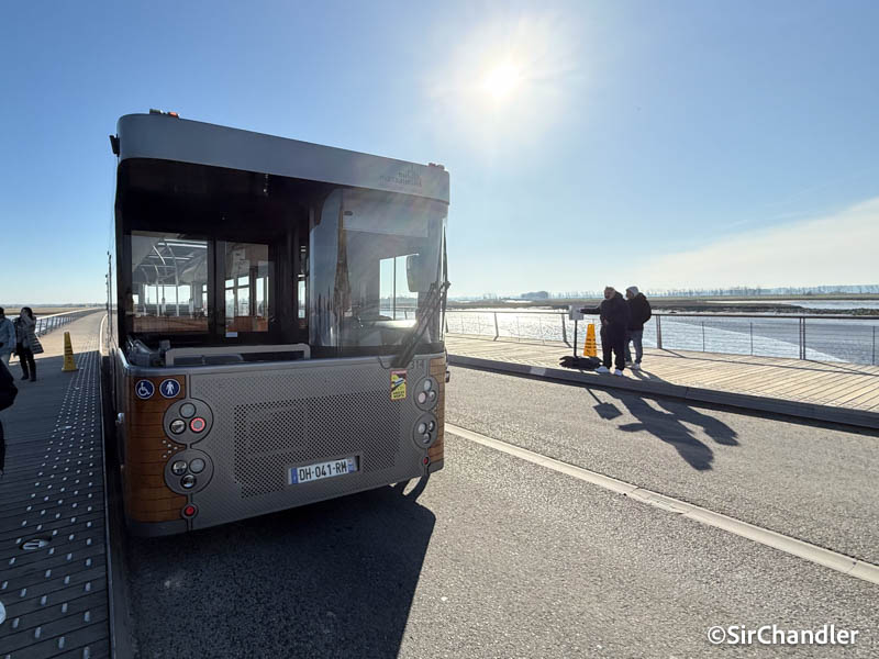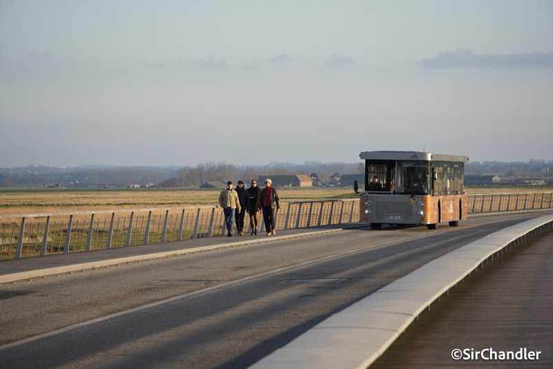 A unos 200 metros, calculo, te deja ese bus. Es gratuito y te levanta desde el estacionamiento de auto o desde donde te podrían dejar buses de largo recorrido. También desde los hoteles que están dentro de la zona dedicada, que es a un par de kilómetros. Nosotros nos quedamos una noche en el Mercure Mont Saint Michel.