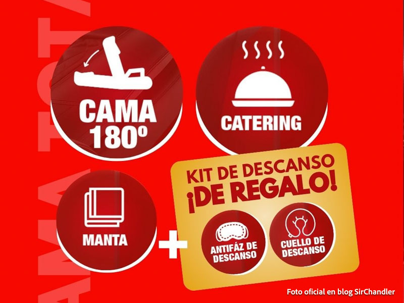 O sea se reclina más que el CAMA «sin servicio». Pero el costo del catering, el uso de la manta y el regalo del cuello y antifaz (como un amenitie de los aviones en business) cuesta $24.800 más que el cama sin servicio.