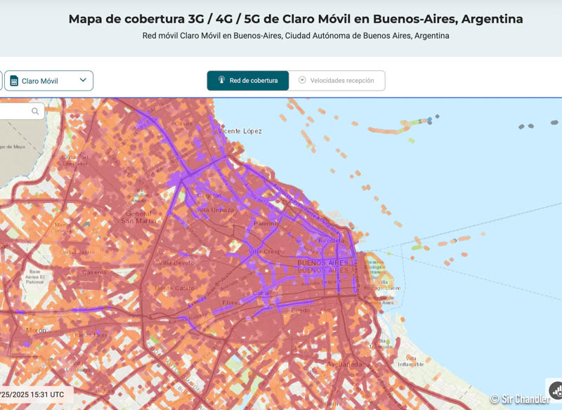 Hice algunas capturas cambiando ciudades y operadores siendo lo violeta lo de 5G. Por ejemplo Claro en Córdoba
