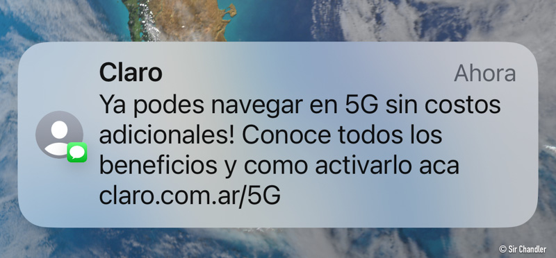 Hola Sir! Acá en Córdoba hace poco me empezó a agarrar 5G en casa, yo estoy en un barrio pegado al centro. Hasta ahora lo agarra intermitentemente. Después de eso me llegó el mensaje de Claro, creo que dos veces ya.