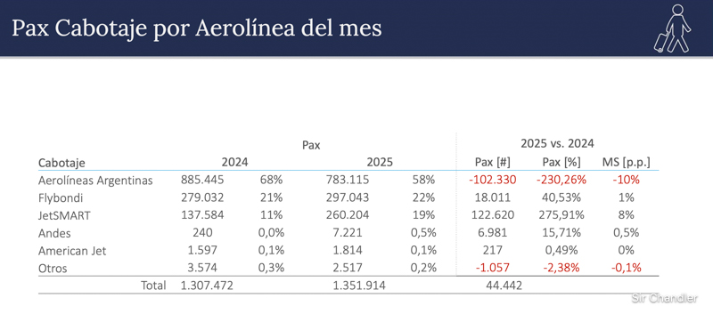 Sir: no es llamativo que Aerolineas Argentinas venga perdiendo tanto porcentaje en vuelos de cabotaje?