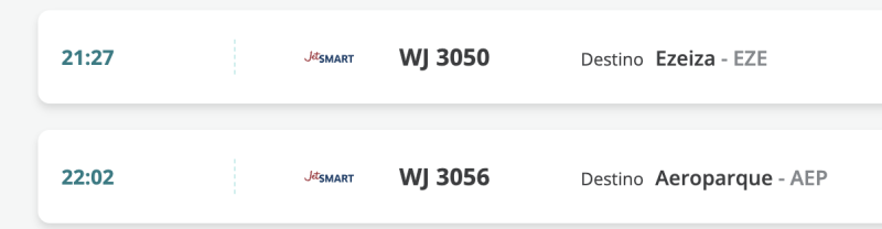 Hola Mercedes..como estas. Fíjate bien por que wj tiene batantes frecuencias diarias. Este viernes tome el wj3140. Que sale a las 05.55 de aep. Y llega 07.43 a igr. Saludos desde mdq