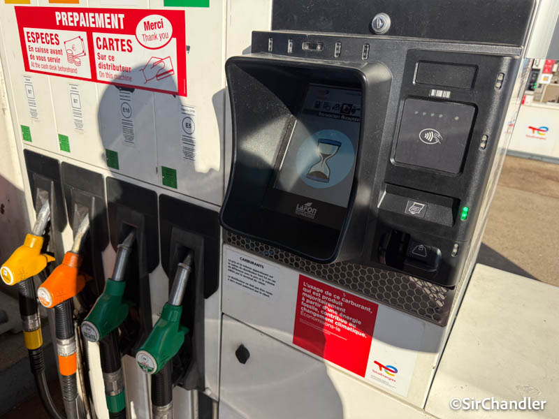 Ahí ya tuvimos que cargar combustible que también es autoservicio como en otros lugares de Europa, con pago directo en el surtidor.