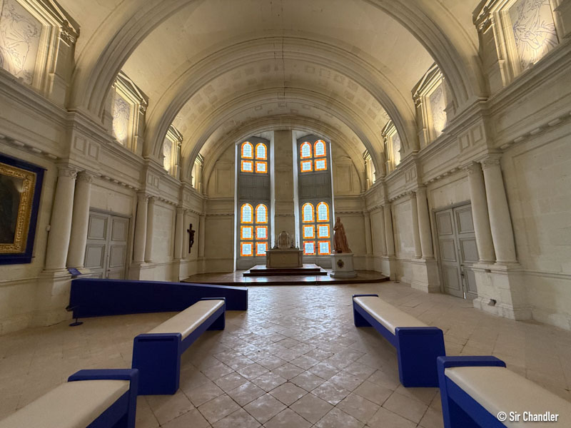 Cuando uno entra tiene la chance de ver un documental que relata la historia, la arquitectura y algunas cuestiones relevantes. Entre ellas la relevancia de Da Vinci en algunas cosas. Y eso se proyecta en una pantalla grande en Francés, pero luego hay algunos televisores con subtítulos en otros idiomas entre ellos el castellano. Y vale mucho la pena.