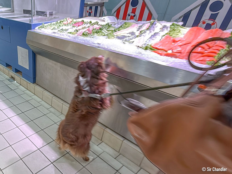 Y este perrito estaba contento con la pescadería
