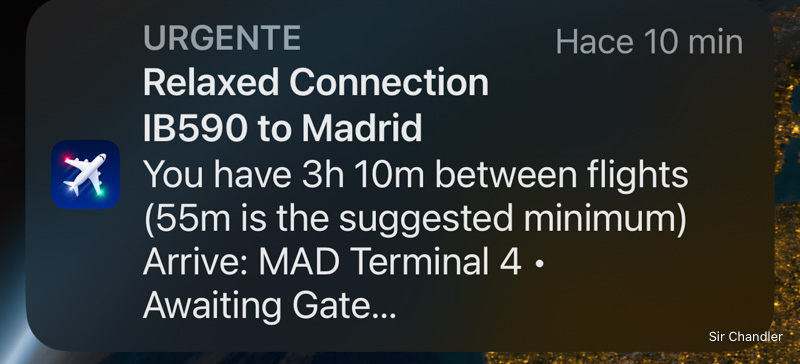 De nuevo dejo lo de Flighty que decía lo de 3:10 de espera y que con 55 minutos estamos «ok» para combiinar en Barajas