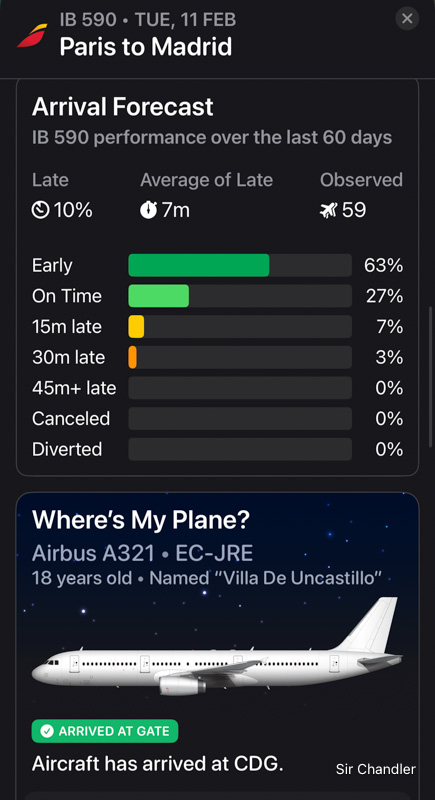No porque se notara, si no porque lo decía la app Flighty con 18 años de vuelos