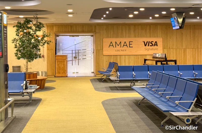 Ahora que VipClub se independizó a un espacio propio, el de la puerta 1 pasó a llamarse AMAE como los que están en otros aeropuertos del país y tiene el logo de Visa, porque es por ahora el de ingreso mayoritario (desconozco si se puede aun entrar con otros sistemas)