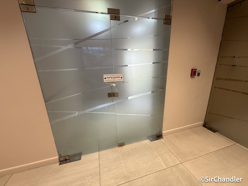Y sellada por la PSA la puerta de vidrio que comunicaba con el sector de seguridad y migraciones que tenía abajo habilitado para los socios VipClub, ya que todo eso se movió a la nueva. Por lo que estimo luego se taparía esa puerta de alguna manera o quizás quede esa faja.