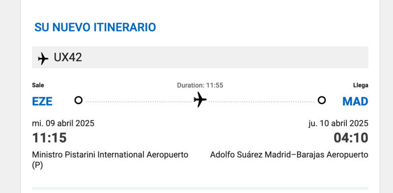 Hola! Yo tengo el vuelo UX041 de Air Europa desde Madrid a Ezeiza el 08/04 a las 23.55 pm.