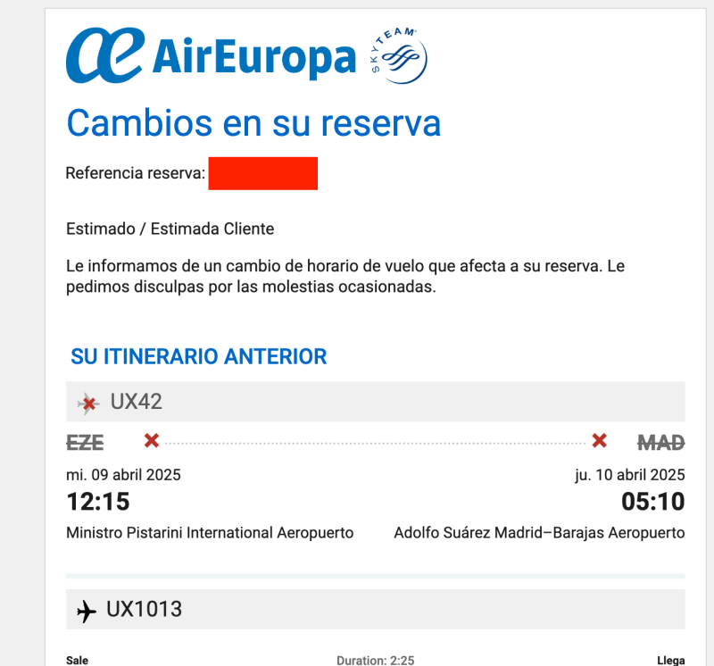 Por lo que vi Air Europa no me envio ningun mail ni nada, a alguien se lo modificaron?