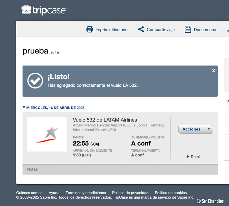 Esto es espectacular! Tenía que ser un Gastón… jajaja! Hablando en serio, lo que más me dolió de perder Tripcase fue cuando todos pensamos que ibamos a perder el historial. Está la promesa de TripIt de que si te suscribis al plan PRO y se los reenvías ellos lo van a cargar a tú cuenta. Estoy en ese proceso, me suscribí y estoy en el período de prueba gratuito. Aun no han aparecido los viajes, y voy a probar bien las alertas TripIt Pro en un viaje complejo que tengo dentro de unos días. Pero saber que existe esta página es otra tranquilidad!! La forma de presentar la info tipo timeline y filtrarla por años es incluso mejor que el mismo Tripcase! Esta genial. Felicitaciones.