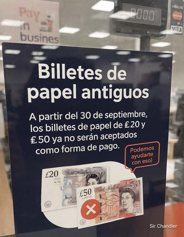 Pero hace varias semanas en el correo de Inglaterra apareció este cartel «A partir del 30 de septiembre, los billetes de papel de £20 y £50 ya no serán aceptados como forma de pago».