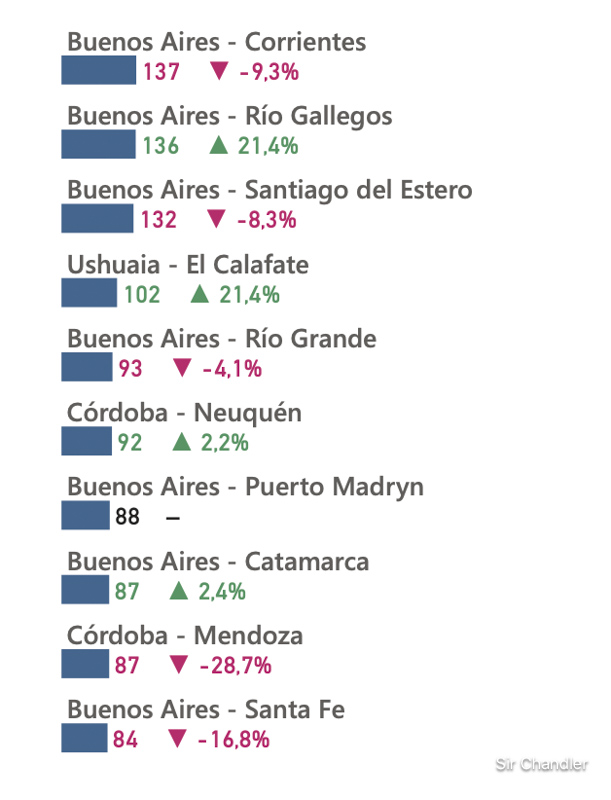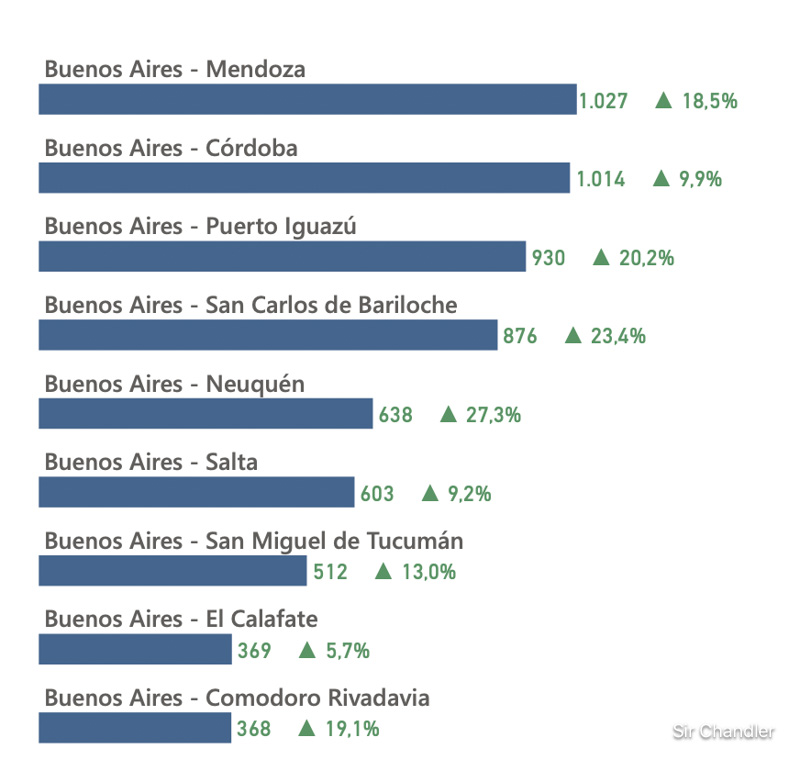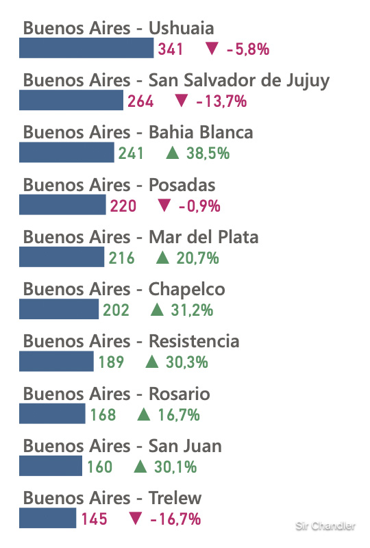 Estas son las rutas más transitadas. Existen vuelos entre otras ciudades que no son buenos aires PERO LOGICAMENTE no son los más transitados por eso no están en el ranking de los… «más transitados»