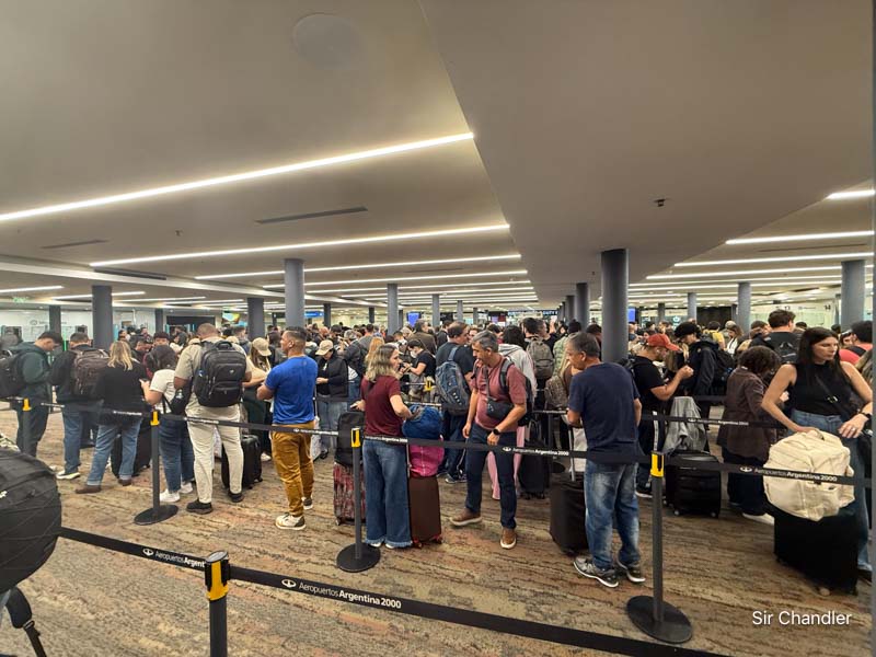 En semana santa sali con mi flia desde AEP a SCL y la fila de migracion era muy larga, llegaba al final de todos los andariveles.