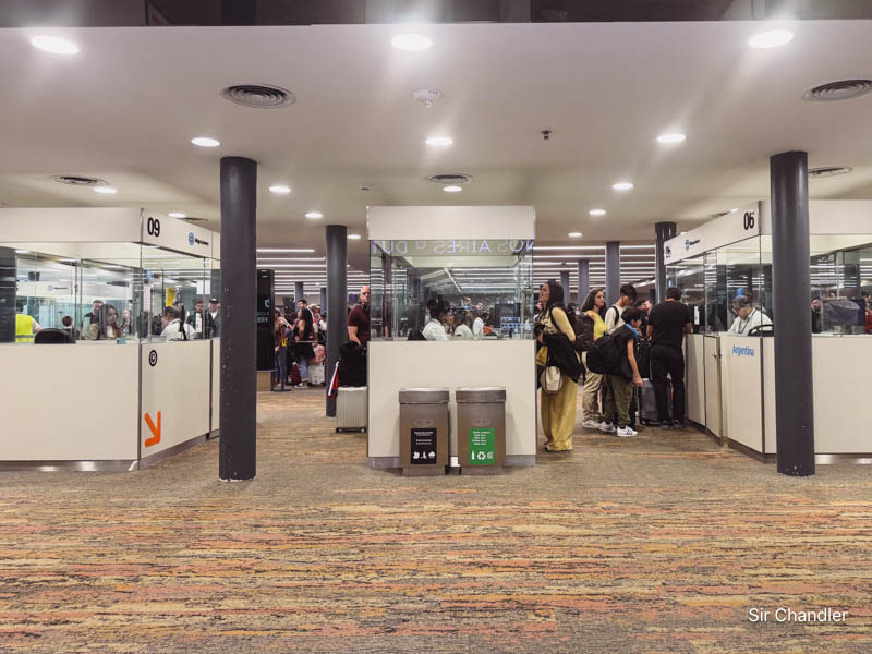 Y uno sale por el costado de esos puestos manuales llenos de extranjeros. Entiendo que si uno falla por las máquinas va a otras casillas manuales, pero dedicadas a los argentinos. También lógicamente si hay menores de 13 años hay que pasar por ahí