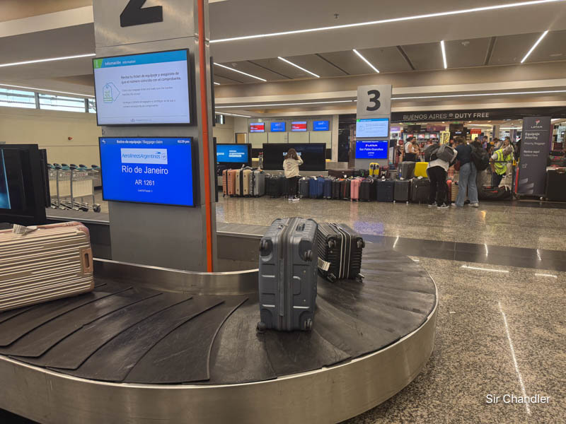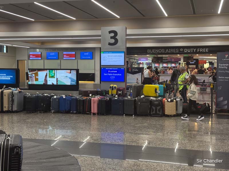 Como dato de color, ya que estaba tan lleno migraciones de extranjeros, el equipaje en las cintas estaba apartado, como se ve en este vuelo desde San Pablo de Latam