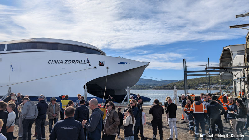 Hoy Buquebus informó que el China Zorrilla, su barco más nuevo y el primero 100% eléctrico, fue botado en Tasmania, Australia.