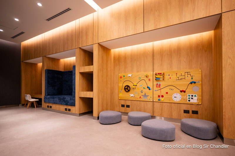 ● Ingreso controlado directo desde el área de preembarque, para garantizar tranquilidad y seguridad.● Colores, iluminación, mobiliario e insonorización diseñados para minimizar estímulos visuales, sonoros y olfativos.