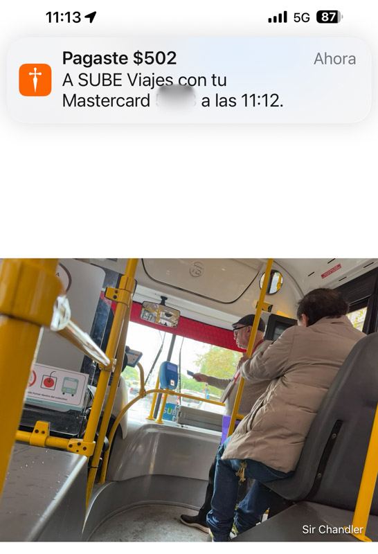 Muy raro lo que me pasó. Estuve pagando el pasaje de bondi y subte con Google Pay en el teléfono, cargado con una tarjeta Wise.